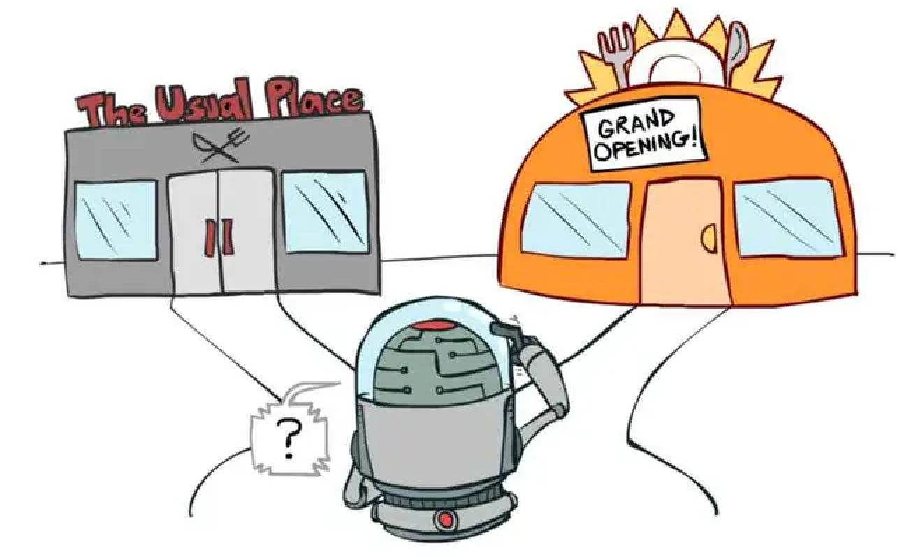 1) Routine decisions such as what to eat for lunch, or what movie to watch – do we eat what we love (exploit) or try something new (explore)? Do we watch the big budget movie that our friends watched (exploit) or the new independent movie (explore)?
